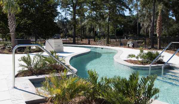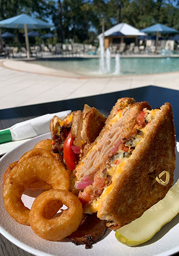 Dining options include the Billy Mac’s Grille in The Clubhouse, which features an open, casual style with bright colors and natural light. Guests can enjoy both indoor and outdoor seating with views of the pool deck and Lazy River. The full-service bar, Tiki Bar, and cabanas provide a perfect setting for enjoying frozen drinks, cocktails, and local brews