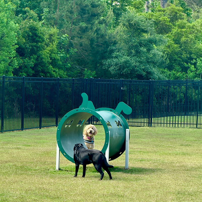 Imagine a place where tails wag nonstop and happy barks fill the air. Our spacious, thoughtfully designed dog park gives your pup the freedom to run, sniff, and socialize in a safe and scenic environment. We’ve created separate areas for small and large dogs, ensuring every pup can play comfortably with companions their own size and temperament. Whether your furry friend has the zoomies, loves to chase a ball, or prefers a relaxed stroll along the fence line, there’s a spot for them here. Shady trees, comfortable benches, and scenic landscaping make it equally inviting for pet parents. And because variety keeps tails wagging, we’ve added agility features like tunnels, hurdles, and ramps—plus wide-open grassy areas perfect for a lively game of fetch or a cozy sunbathing session.
